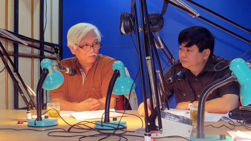 El entonces vicejefe del Departamento de Propaganda y Educación del Comité Central del Partido Comunista Nguyen The Ky (d) en el programa especial de la Voz de Vietnam en conmemoración de los 40 años de la reunificación nacional en 2015