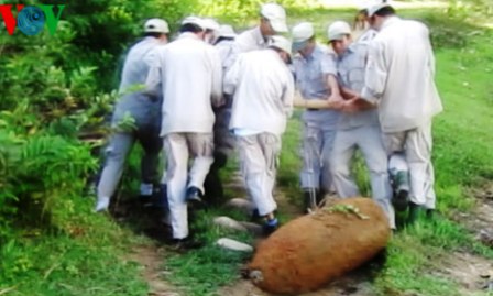 Al definir estas bombas como explosivos peligrosos inamovibles, el jefe de la unidad de desminado ambulante número tres Duong Duc Tam, quien acumula 20 años de experiencia en esta labor, decidió detonarlas de inmediato. Con el dominio de la técnica, los cinco miembros del grupo se pusieron a trabajar, avisando a los habitantes locales permanecer por lo menos a 150 metros del sitio de explosión. Además, cubrieron las bombas con arena y dirigieron la explosión para garantizar la seguridad de los cultivos de los agricultores locales. Después de hacerlas estallar, Duong Duc Tam compartió:“Hacemos una labor humanitaria. Hemos contribuido con aportes humildes a reducir al mínimo los riesgos latentes de accidentes con explosivos sin desactivar y recuperar terrenos para plantaciones y sobrevivencia de los lugareños”.