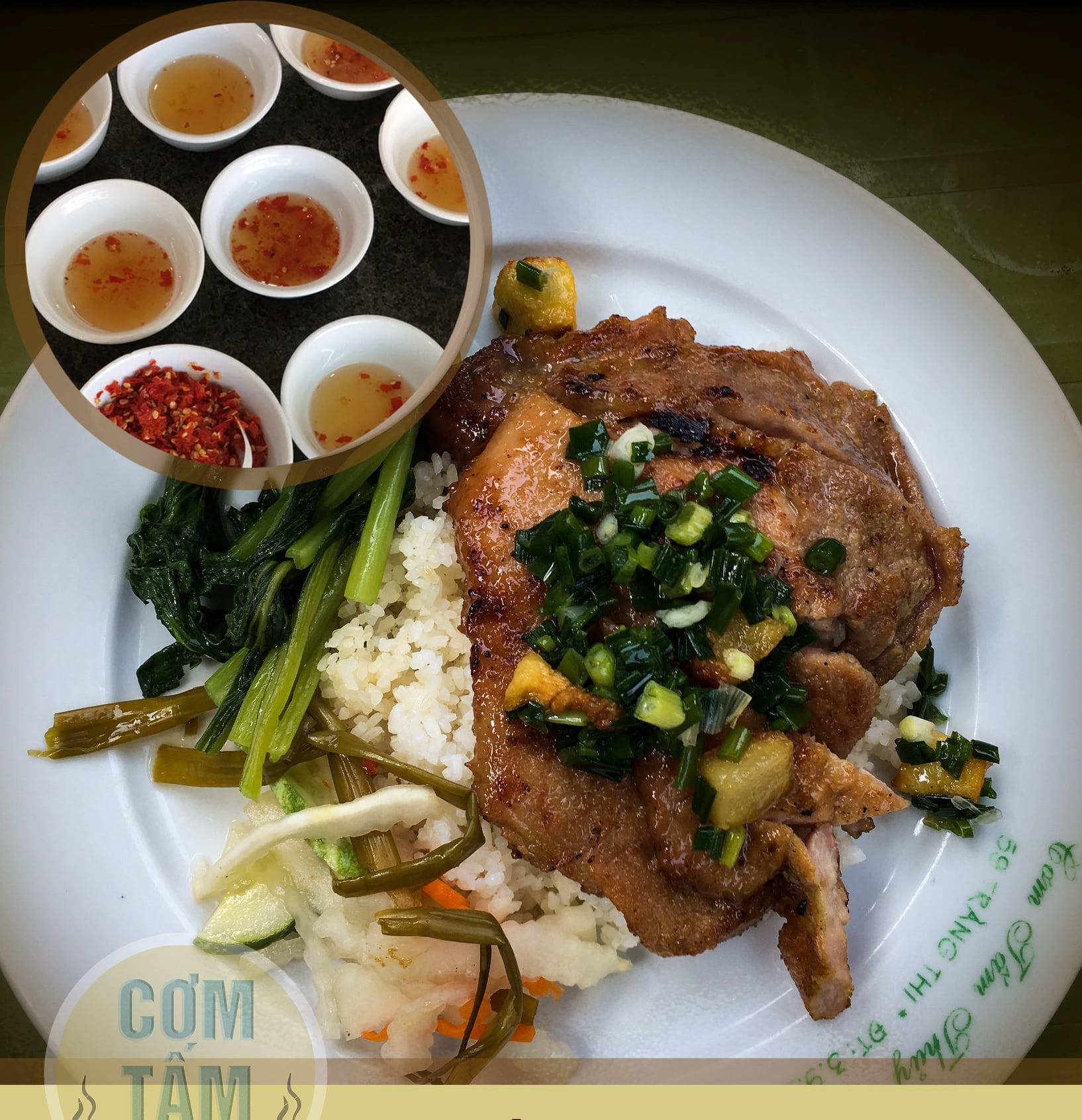 En Thuy Linh Chau el arroz se cocina en una olla de hierro fundido ya que este material puede soportar altas temperaturas. Luego se cuece el arroz al vapor para que no quede demasiado seco. Para asar el pollo, se le quitan los huesos y solo se consumen los muslos. Las costillas de cerdo se cortan en trozos poco más grandes que una caja de cerillas. Las guarniciones que acompañan los platos son abundantes. Dependiendo de las preferencias personales, cada comensal puede elegir “cha trung”, una especie de pastel de huevos salados y gambas, o huevos fritos. Thuy explicó: “El arroz “com tam” no es popular entre los paladares norteños porque presenta un sabor típico del sur, pero yo mantengo los ingredientes y condimentos acorde a la elaboración tradicional de Saigón. Aquí servimos principalmente costillas de cerdo y pollo, los cuales son marinados con los mismos condimentos sureños durante uno o dos días. Después, los congelamos antes de asarlos. Mientras, cocemos al vapor el pastel “cha trung” durante unas dos horas. Empleamos huevos salados y gambas secas para elaborar este pastel. Otro plato que contiene este tipo de huevos se conoce como “trung muoi ca linh”. Esta comida consiste en la combinación de huevos y una variedad de pescado llamada “linh”, especialidad de la ciudad meridional de Chau Doc. Luego añadimos piel y grasa de cerdo, oreada y frita, al “com tam”. Además, la cebolla frita debe mantener su color verde. Igualmente, la salsa de pescado debe mantener sus intensos sabores: agridulce y picante”.