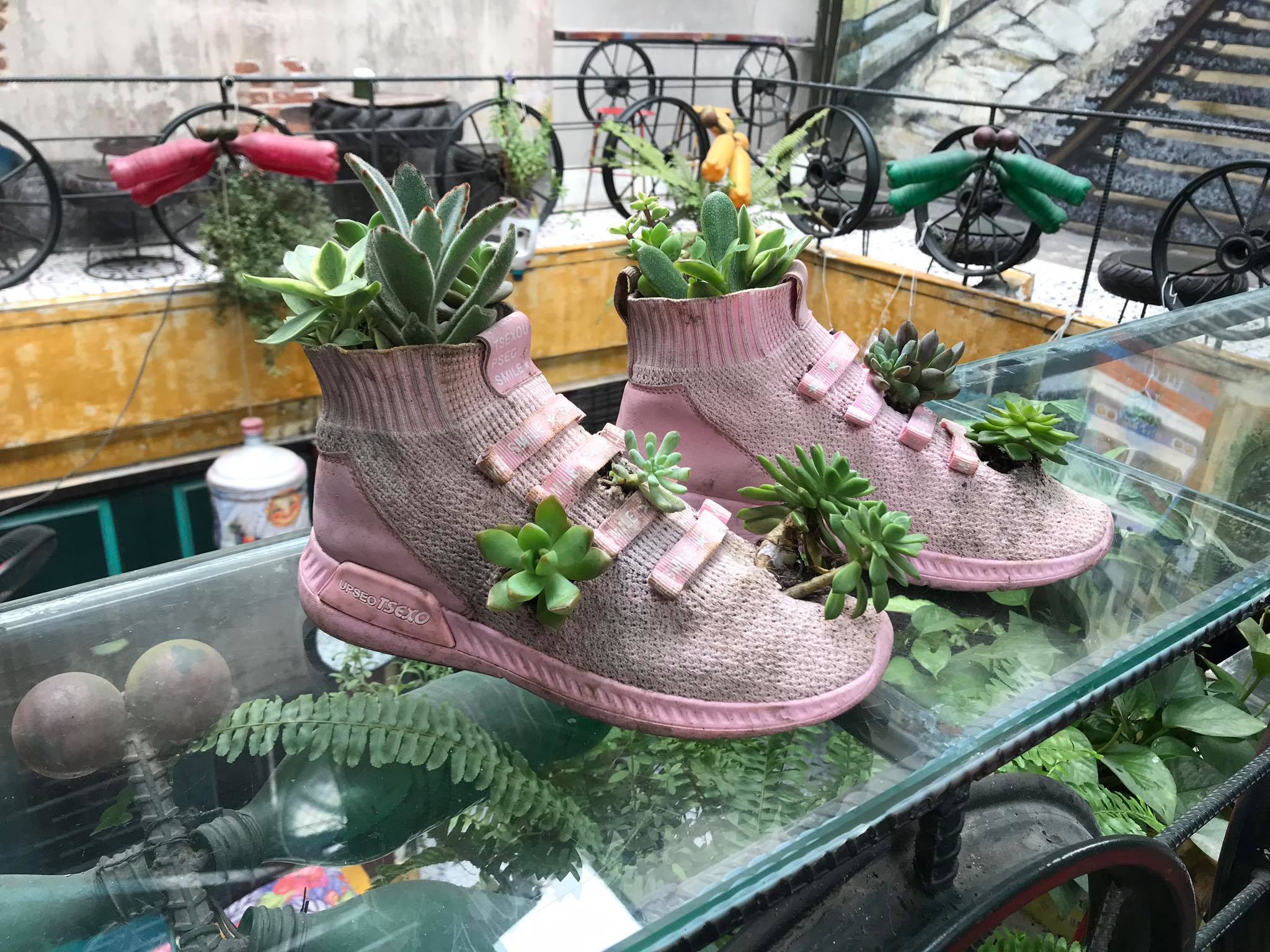 Zapatos rotos se utilizan para plantar árboles. (Foto: VOV5) |