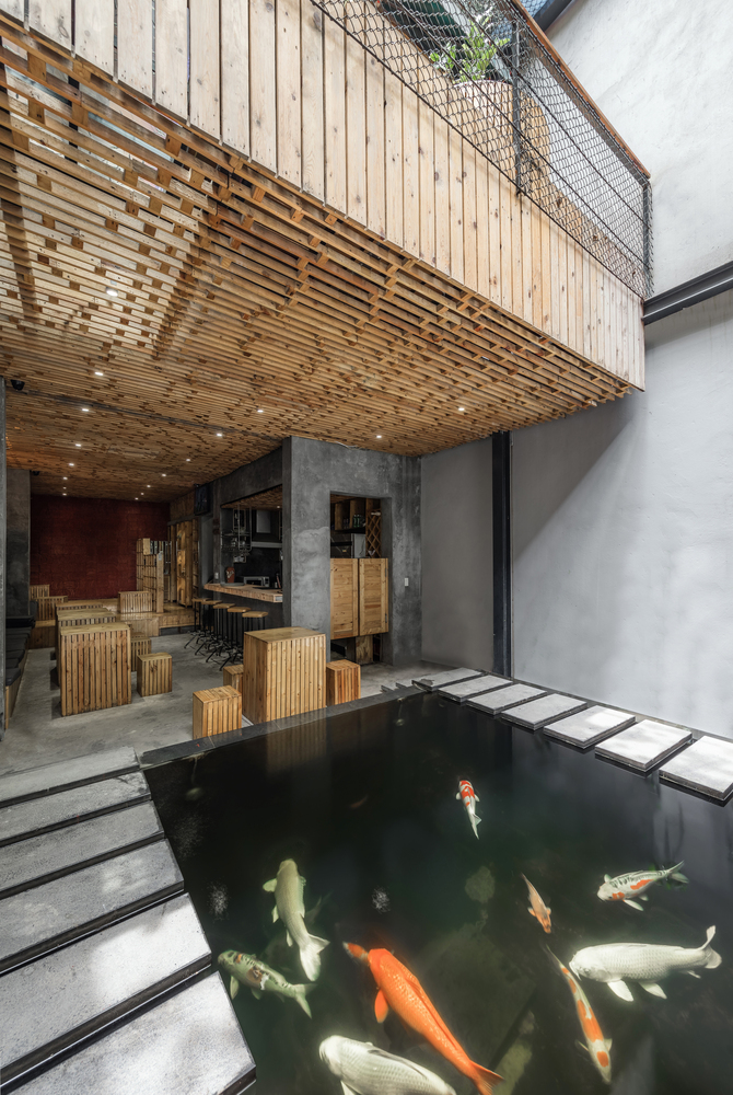 Inaugurado en 2018, Koi Café ocupa área rectangular de más de 80 metros cuadrados. Aunque la fachada del establecimiento es bastante estrecha, gracias a una apropiada guía de diseño y decoración, su espacio y extensión parecen más grandes y llamativos.