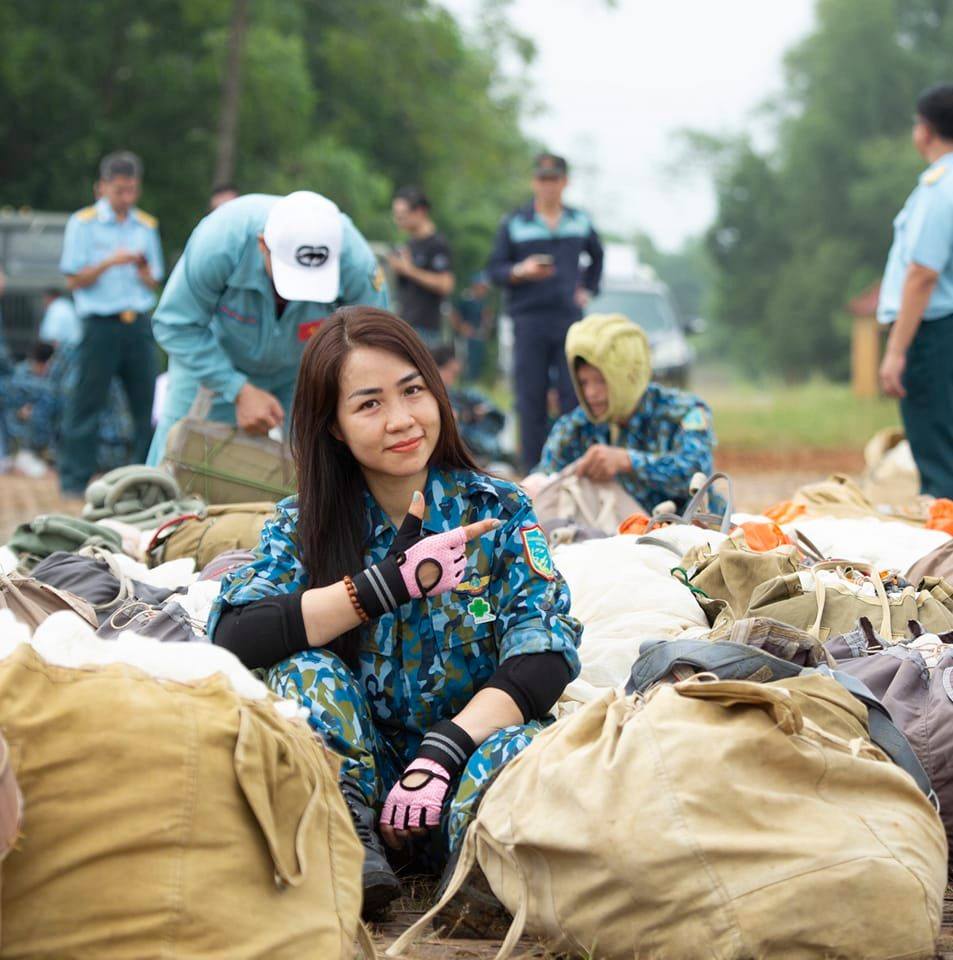 A casi 1.000 metros sobre el suelo, los paracaidistas preparaban su postura para estar listos para saltar. Bajo la guía del instructor, uno por uno se alineó en turno hasta la puerta del avión de acuerdo con el número de orden y comenzó a saltar. Aunque estaba bastante nerviosa y se sentía abrumada al flotar sola en el aire, para Loan fue realmente una experiencia inolvidable al poder superar su propio miedo.