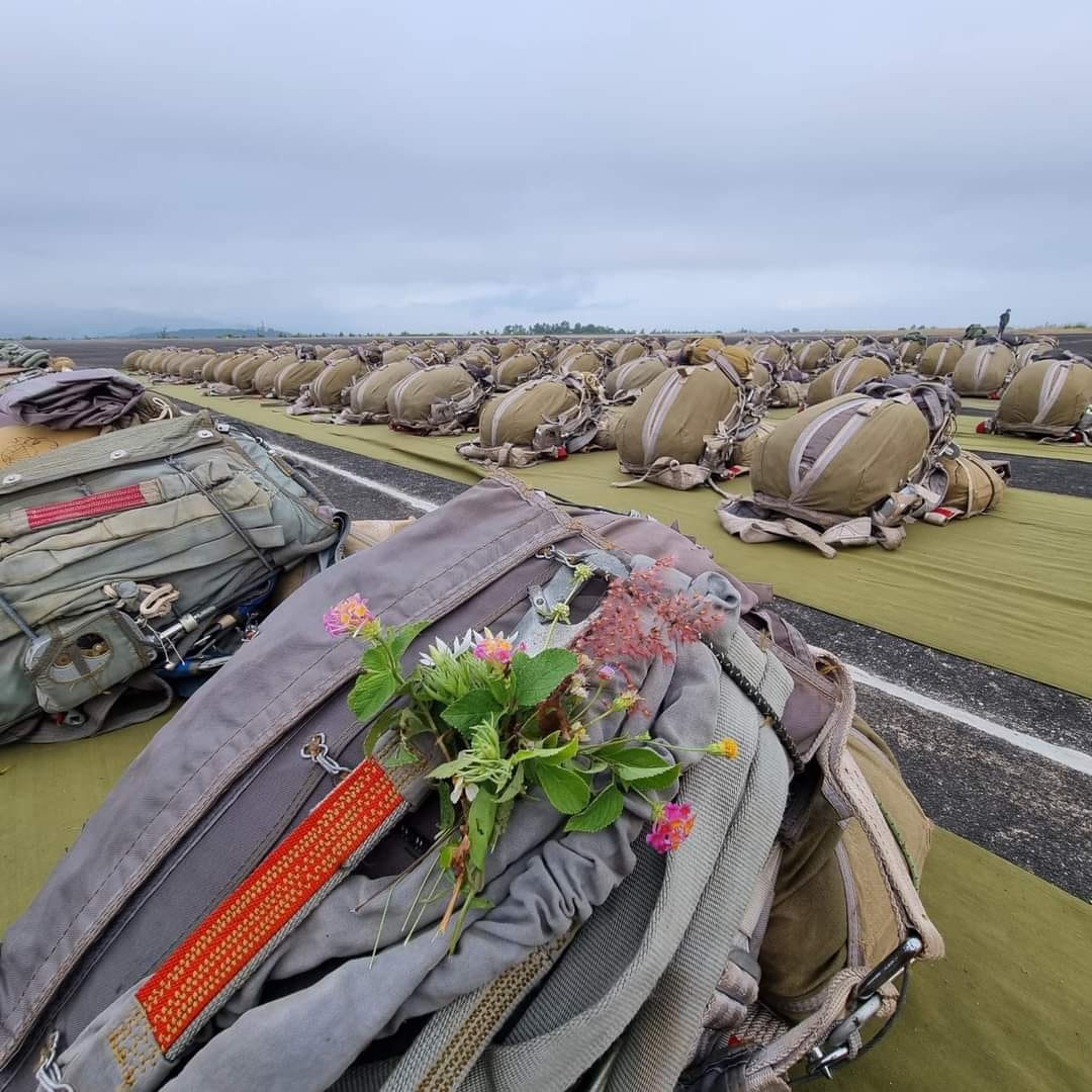 Mochilas colocadas perfectamente antes de que los jugadores realicen sus saltos en paracaídas. (Foto: facebook/loanle) |