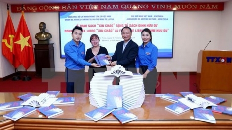 (VOVWORLD) - La Asociación de Amistad Vietnam – Venezuela (AAVV) donó ejemplares de la versión vietnamita del libro “Xin chao” (Hola), del ex segundo secretario de la Embajada de Venezuela en este país, Ángel Miguel Bastidas González, al fondo de libros Dinh Huu Du, del núcleo de la Unión de Jóvenes Comunistas Ho Chi Minh en la Agencia Vietnamita de Noticias (VNA).