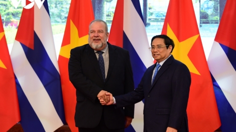 (VOVWORLD) - El primer ministro Pham Minh Chinh presidió el 29 de septiembre en Hanói una ceremonia de bienvenida a su homólogo cubano Manuel Marrero Cruz, al frente de una delegación del Gobierno que se encuentra de una visita oficial de amistad a Vietnam del 28 de septiembre al 2 de octubre.