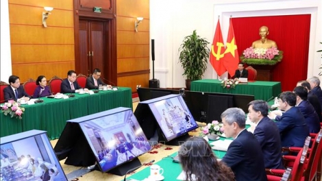 (VOVWORLD) - El miembro permanente del Secretariado del Partido Comunista de Vietnam, Vo Van Thuong, y su homólogo cubano, Roberto Morales Ojeda, mantuvieron hoy un diálogo en línea en el que actualizaron informaciones sobre la situación de cada país.
