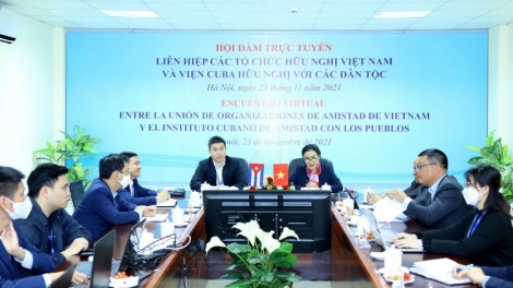 (VOVWORLD) - La presidenta de la Unión de Organizaciones de Amistad de Vietnam (VUFO), Nguyen Phuong Nga, y el titular del Instituto Cubano de Amistad con los Pueblos (ICAP), Fernando González Llort asistieron a las conversaciones bilaterales efectuadas el 23 de noviembre de forma virtual.