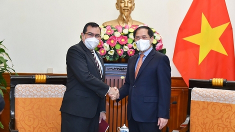 (VOVWORLD) - El ministro de Relaciones Exteriores Bui Thanh Son recibió el 11 de octubre al embajador panameño en Hanói, Eligio Alberto Salas De León, quien le realizó una visita de cortesía.
