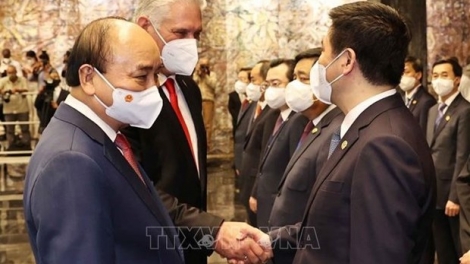 (VOVWORLD) - El presidente vietnamita, Nguyen Xuan Phuc, y el primer secretario del Partido Comunisa y jefe de Estado de Cuba, Miguel Díaz-Canel, sostuvieron en la tarde de este domingo en La Habana conversaciones oficiales en las cuales se comprometieron a fortalecer las relaciones políticas.