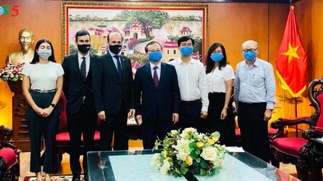 (VOVWORLD) - El director general de la Voz de Vietnam (VOV), Do Tien Sy, sostuvo hoy en la sede del Centro Nacional de Radiodifusión en Hanói, una reunión con los embajadores de Argentina y Noruega.