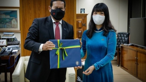 (VOVWORLD) - Al ser recibida la víspera por el vicepresidente brasileño Hamilton Mourão, la embajadora de Vietnam en Brasilia, Pham Thi Kim Hoa, afirmó que su país valora el papel y la posición de Brasil en la arena internacional y desea continuar fortaleciendo los nexos de asociación integral entre las dos naciones.