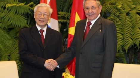 (VOVWORLD) - El secretario general del Partido Comunista y presidente de Vietnam, Nguyen Phu Trong, transmitió el jueves sus felicitaciones al primer secretario del Partido Comunista de Cuba, Raúl Castro Ruz, y al presidente Miguel Díaz-Canel, en ocasión del aniversario 62 del Día del Triunfo de la Revolución Cubana (1 de enero de 1959).