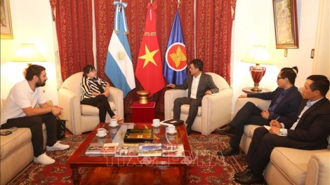 (VOVWORLD) - El nuevo embajador de Vietnam en Argentina, Duong Quoc Thanh, se reunió el viernes con la vicepresidenta del Partido Solidario (PSOL) y diputada argentina del Parlasur, Julia Perié, y la presidenta del Instituto de Cultura Argentino-Vietnamita (ICAV), Poldi Sosa Schmidt, para debatir sobre el programa de cooperación binacional.