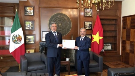 (VOVWORLD) - El embajador vietnamita en México, Nguyen Hoai Duong, entregó el 8 de julio al Gobierno mexicano la decisión del viceprimer ministro y titular de Relaciones Exteriores, Pham Binh Minh, de nombrar oficialmente a Miguel Ángel Landeros Voquart, vicepresidente del Consejo Empresarial Mexicano de Comercio Exterior, Inversión y Tecnología (COMCE), como cónsul honorario de Vietnam en la ciudad de Guadalajara, mandato 2020-2023.
