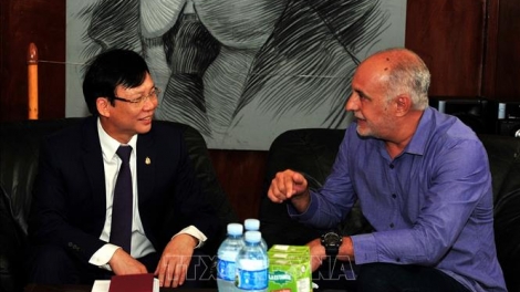 (VOVWORLD) - Aumentar el intercambio de experiencias en el desarrollo periodístico en la nueva coyuntura fue el tema principal de un encuentro sostenido el 9 de septiembre en La Habana entre Ricardo Ronquillo Bello, presidente de la Unión de Periodistas de Cuba (UPEC), y el subtitular de la similar vietnamita, Ho Quang Loi.