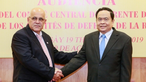 (VOVWORLD) - El presidente del Frente de la Patria de Vietnam, Tran Thanh Man, se reunió el lunes con el coordinador de la Dirección Nacional de los Comités de Defensa de la Revolución de Cuba, Carlos Rafael Miranda Martínez, de visita en este país indochino.