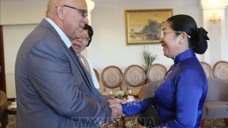 (VOVWORLD) - La presidenta de la Asamblea Nacional de Vietnam, Nguyen Thi Kim Ngan, recibió este martes en Hanói al coordinador nacional de los Comités de Defensa de la Revolución de Cuba, Carlos Rafael Miranda Martínez, quien encabeza una delegación de esa organización en visita de trabajo a este país.