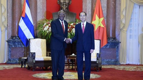 (VOVWORLD) - El presidente de Vietnam, Tran Dai Quang y la titular de la Asamblea Nacional Nguyen Thi Kim Ngan sostuvieron encuentros por separado este jueves en Hanói con el primer vicepresidente de los Consejos de Estado y de Ministros de Cuba, Salvador Valdés Mesa, quien se encuentra en la nación indochina para asistir a las actividades conmemorativas por el 45 aniversario de la visita del Comandante en Jefe del país caribeño, Fidel Castro a las zonas recién liberadas de Vietnam del Sur.