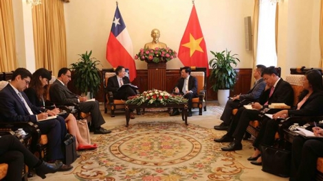 (VOVWORLD) - Vietnam siempre considera a Chile como un socio importante en la América Latina, afirmó el viceprimer ministro y canciller vietnamita, Pham Binh Minh, al recibir este miércoles al titular de Relaciones Exteriores chileno, Roberto Ampuero Espinoza, de visita aquí para participar en la conferencia del Foro Económico Mundial sobre la Asociación de Naciones del Sudeste Asiático (FEM-Asean) en desarrollo en Hanói.