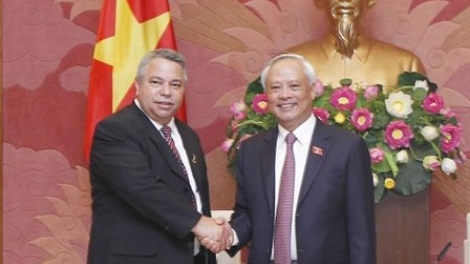 (VOVWORLD) - El vicepresidente de la Asamblea Nacional de Vietnam, Uong Chu Luu recibió este 6 de julio a una delegación cubana encabezada por el miembro del Buró Político del Partido Comunista, miembro del Consejo de Estado y diputado de la Asamblea Nacional del Poder Popular de Cuba, Ulises Guilarte de Nacimiento.