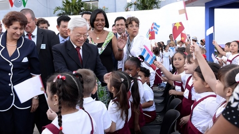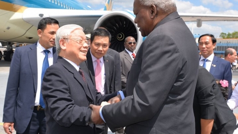 (VOVWORLD) - El secretario general del Partido Comunista de Vietnam (PCV), Nguyen Phu Trong, arribó el miércoles a La Habana, para iniciar una visita estatal a Cuba, en cumplimiento de una invitación del primer secretario del Comité Central del Partido Comunista y presidente de los Consejos de Estado y de Ministros del país caribeño, Raúl Castro Ruz.