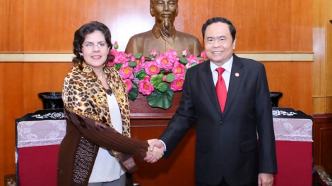 (VOVWORLD) - El presidente del Comité Central del Frente de la Patria de Vietnam, Tran Thanh Man, dio la bienvenida el miércoles en Hanói a la embajadora de Cuba, Lianys Torres Rivera, en ocasión de su nueva misión en este país.