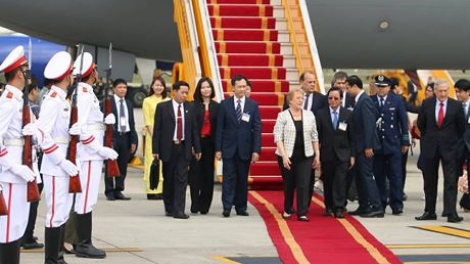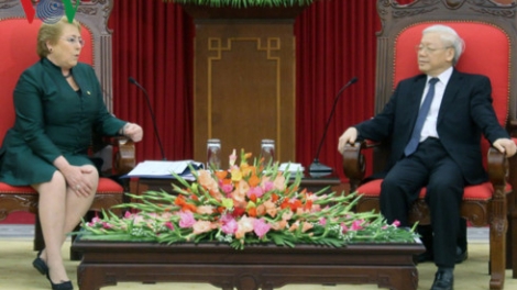 Máximo líder político de Vietnam recibe a la presidenta de Chile