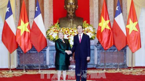 (VOVWORLD) - El presidente de Vietnam, Tran Dai Quang y su homóloga chilena, Michelle Bachelet presidieron este 9 de noviembre una rueda de prensa para informar sobre sus conversaciones realizadas durante la visita de esta última a la nación indochina del 9 al 11 de noviembre.