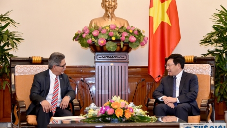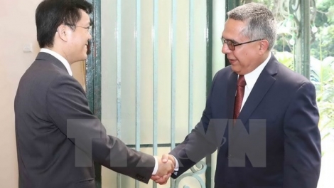 (VOVWORLD) - Vietnam y Cuba deben promover la eficiencia de los mecanismos de cooperación entre la Comisión intergubernamental en la materialización de los acuerdos firmados, afirmó este jueves el viceprimer ministro de Vietnam, Trinh Dinh Dung, en la ceremonia de recepción al embajador cubano, Herminio López Díaz.
