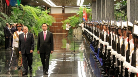 (VOVworld) – El presidente de Vietnam, Tran Dai Quang, su esposa y una delegación de alto nivel del Partido Comunista y del Estado, llegaron este martes a Cuba para iniciar su visita oficial a ese país, en cumplimiento de la invitación que le hiciera su homólogo cubano, Raúl Castro.