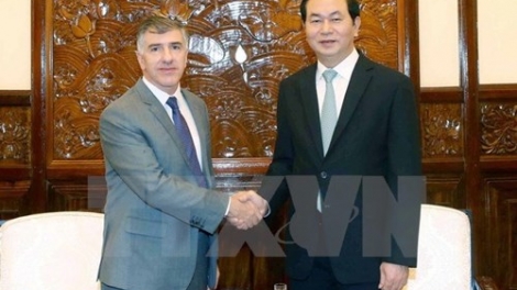 (VOVworld) – El presidente vietnamita, Tran Dai Quang, agradeció este miércoles al embajador argentino, Claudio Gutiérrez, por su contribución al fortalecimiento de la amistad y cooperación entre los dos países, en un encuentro de despedida del diplomático por el fin de su misión.