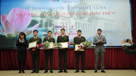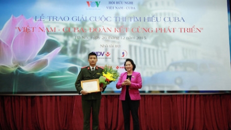 (VOVworld) - El 26 de diciembre, en la sede de la Unión de Organizaciones de Amistad de Vietnam en Hanoi, tuvo lugar el otorgamiento de premios del concurso de estudio sobre Cuba titulado “Vietnam – Cuba unidos para el desarrollo”.