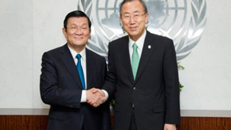 (VOVworld) - El presidente vietnamita Truong Tan Sang y su esposa, al frente de una delegación, partieron el 23 de septiembre de Hanoi para participar en la Cumbre de la ONU para la Agenda 2030 sobre el desarrollo sostenible y los encuentros de alto nivel relacionados en Nueva York, del 24 al 28 de septiembre de 2015, cumpliendo la invitación del secretario general de la ONU, Ban Ki-moon y visitará Cuba del 28 al 30 de septiembre según la invitación del presidente cubano Raúl Castro Ruz.