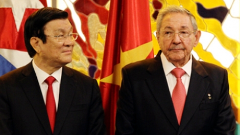 (VOVworld) – Continuando su agenda de trabajo en Cuba del 28 al 30 de septiembre, el presidente de Vietnam, Truong Tan Sang se reunió este martes con su homólogo anfitrión, Raúl Castro en el Palacio de la Revolución de La Habana.