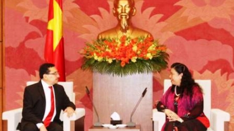 (VOVworld) - La vicepresidenta de la Asamblea Nacional Tong Thi Phong, recibió este jueves en Hanoi al secretario general del Frente Farabundo Martí para la Liberación Nacional (FMLN) de El Salvador, Medardo González, de visita en el país.