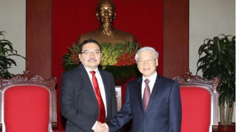 (VOVworld) - El secretario general del Partido Comunista de Vietnam (PCV) Nguyen Phu Trong recibió este viernes a Medardo González, secretario general del Frente Farabundo Martí para la Liberación Nacional (FMLN) de El Salvador de visita en Hanoi.