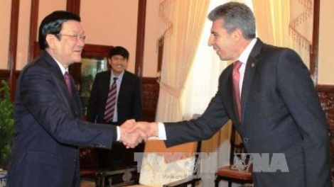 (VOVworld) – Al recibir al embajador saliente mexicano, Gilberto Limón Enríquez, el presidente vietnamita Truong Tan Sang expresó su convicción por la buena marcha de los lazos de amistad tradicional entre ambos países, reflejada por el incremento anual del intercambio comercial bilateral. Subrayó que Vietnam y México deben acelerar la fundación del Comité mixto de Comercio, Inversión y Cooperación Económica.