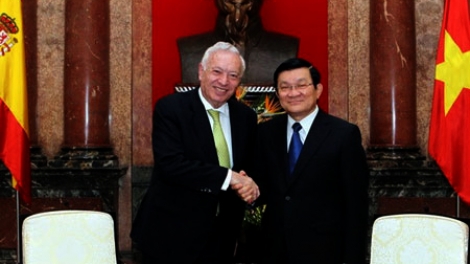 (VOVworld) - El presidente de Vietnam, Truong Tan Sang, recibió el 27 de marzo al ministro de Asuntos Exteriores y Cooperación de España, José Manuel García Margallo, en visita de trabajo.
