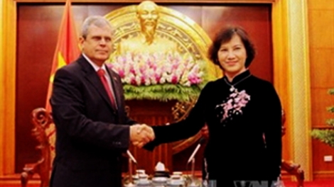 (VOVworld) – La vicepresidenta del Parlamento vietnamita, Nguyen Thi Kim Ngan recibió este martes a una delegación del Consejo de Estado de Cuba, encabezada por su secretario del mismo Homero Acosta Álvarez.
