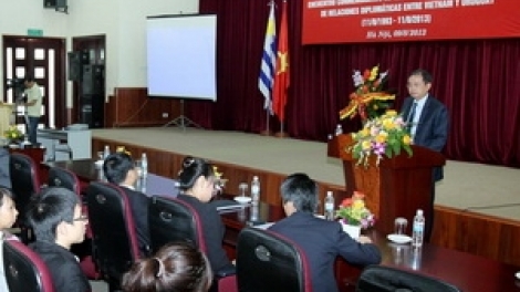 (VOVworld) - Con motivo del aniversario 20 del establecimiento de las relaciones diplomáticas entre la República Socialista de Vietnam y la República Oriental del Uruguay (ll de agosto de l993-ll de agosto de 20l3), el presidente Truong Tan Sang intercambió mensaje de felicitación con el mandatario uruguayo José Mujica.