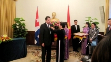 (VOVworld) – La vicepresidenta vietnamita, Nguyen Thi Doan, le otorgó este jueves al embajador extraordinario y plenipotenciario de Cuba, Fredesmán Turró González, la Orden de Amistad. Se trata de un título honorífico que el Estado vietnamita concede a extranjeros por sus contribuciones sustantivas al robustecimiento de las relaciones fraternales y la cooperación integral entre Vietnam y otros países en el mundo