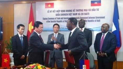 (VOVworld) - Vietnam y Haití suscribieron este 22 de julio un Acuerdo Marco de Comercio e Inversión para fortalecer la cooperación en diversos campos, que incluye el establecimiento de una Comisión intergubernamental, el intercambio de información y apoyo a las empresas binacionales.