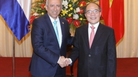 (VOVworld) - El presidente de la Asamblea Legislativa de El Salvador, Sigfrido Reyes y su comitiva iniciaron este jueves una visita oficial en Vietnam hasta el 11 de junio. En las conversaciones con el dirigente salvadoreño tras el recibimiento oficial, el presidente de la Asamblea Nacional de Vietnam, Nguyen Sinh Hung puso en relieve las relaciones tradicionales entre los dos países que se remontan a tiempos de guerra en esta tierra indochina pese al reciente establecimiento de sus vínculos diplomáticos.