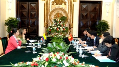 (VOVworld) – El viceministro de relaciones exteriores de Colombia, Patty Londoño, al frente de una delegación, finalizó hoy una visita de 3 días a Vietnam. Al término de una reunión en la cancillería vietnamita, las partes hicieron énfasis en los vínculos de cooperación en comercio, agricultura, cultura, educación y tecnología y acordaron apoyarse mutuamente en organizaciones y foros internacionales