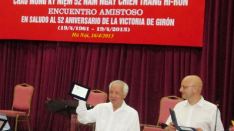 (VOVworld) - “El pueblo vietnamita siempre está al lado del pueblo cubano y le depara los mejores sentimientos solidarios y el más decisivo apoyo”. Así lo afirmó el vicepresidente de la Asociación Nacional de Amistad Vietnam-Cuba, Nguyen Duy Cuong en el encuentro amistoso en saludo al aniversario 52 de la Victoria de Girón, 16 de abril de 1961, efectuado la víspera en Hanói.