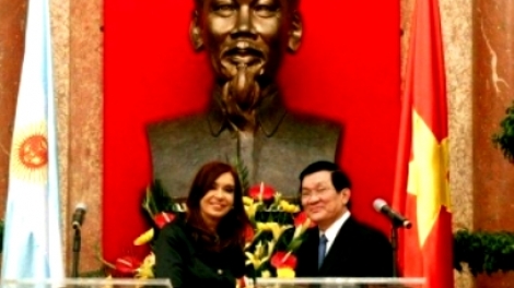 (VOVworld) – Tras el recibimiento oficial en el Palacio Presidencial en Hanoi, la presidenta de Argentina, Cristina Fernández de Kirchner sostuvo conversaciones con su homólogo vietnamita, Truong Tan Sang. Los dos dirigentes estimaron altamente el desarrollo fructífero de las relaciones entre los dos países.