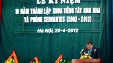 VOVworld) - El Departamento de español de la Universidad de Hanoi celebró hoy el décimo aniversario de su fundación. Esta fue ocasión para que los profesores y los estudiantes de la primera facultad de enseñanza de español en Vietnam evaluaran el resultado de los 10 años en la formación de este idioma, así como veneraran sus valores singulares mediante numerosas actividades de investigación e intercambios culturales prácticas y humanistas.