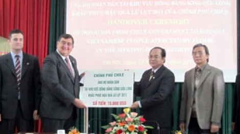 El embajador de Chile en Hanói, Fernando Urrutia, entregó este jueves 15 mil dólares a la Cruz Roja de Vietnam para apoyar a las víctimas de las graves inundaciones en el delta del río Mekong en los últimos tiempos.