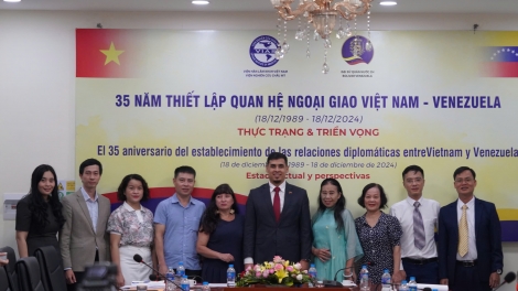 (VOVWORLD) - El seminario “35 años del establecimiento de relaciones diplomáticas entre Vietnam y Venezuela (18 de diciembre de 1989 - 18 de diciembre de 2024): Estado actual y perspectivas” tuvo lugar este jueves en Hanói, con los auspicios del Instituto de Estudios sobre las Américas y la Embajada de Venezuela en Vietnam.