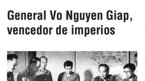 (VOVWORLD) - “General Vo Nguyen Giap, vencedor de imperios” es titular de un artículo publicado por La Agencia Informativa Latinoamericana Prensa Latina este 6 de mayo.